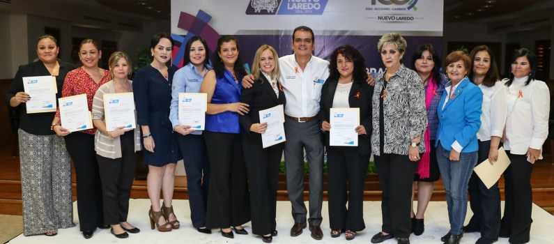 Durante la entrega de reconocimientos el presidente municipal, Enrique Rivas, estuvo acompañado por la primera síndica,Dorina Lozano Coronado y las regidoras Carmen Lilia Canturosas Villarreal, Nora Hinojosa García y Claudia Marina Velasco, Secretaria de administración.