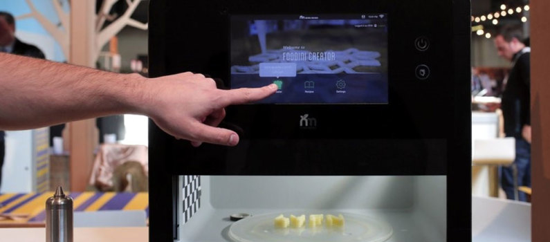 Una es Natural Machines, empresa emergente con sede en Barcelona que comercializa la Foodini, una máquina que funciona con cápsulas e imprime una gran variedad de alimentos, tanto dulces como salados.