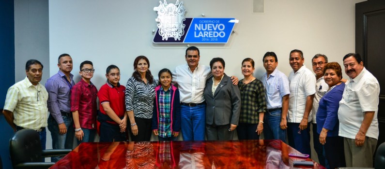 El Presidente Municipal, dio la bienvenida a la comitiva conformada por tres de los concursantes, dos de ellos de Nuevo Laredo y una de Ciudad Victoria, acompañados por la coordinadora estatal del concurso Dora Elia García Covarrubias y Aurelio Uvalle Gallardo, Jefe Regional del Centro de Desarrollo Educativo.