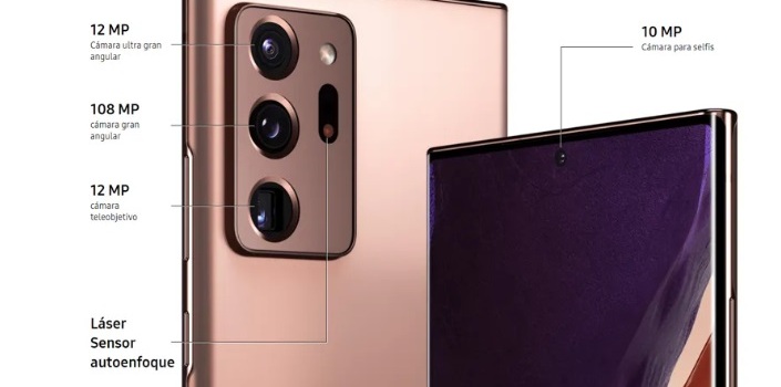 Los dos terminales lucen un agujero frontal en su pantalla para alojar el sensor selfie. En el caso del Note 20 Ultra es de 10 megapixels, sin mejorar las capacidades de la generación anterior. En el S20 Ultra el sensor selfie alcanza los 40 megapixels.