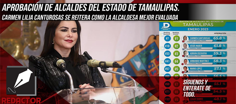 Nuevo Laredo, Tamaulipas. – La alcaldesa de Nuevo Laredo, Carmen Lilia Canturosas Villarreal obtuvo un 65.8% de la aprobación ciudadana en un estudio hecho al mes de enero por la empresa #Demoscopia Digital.
